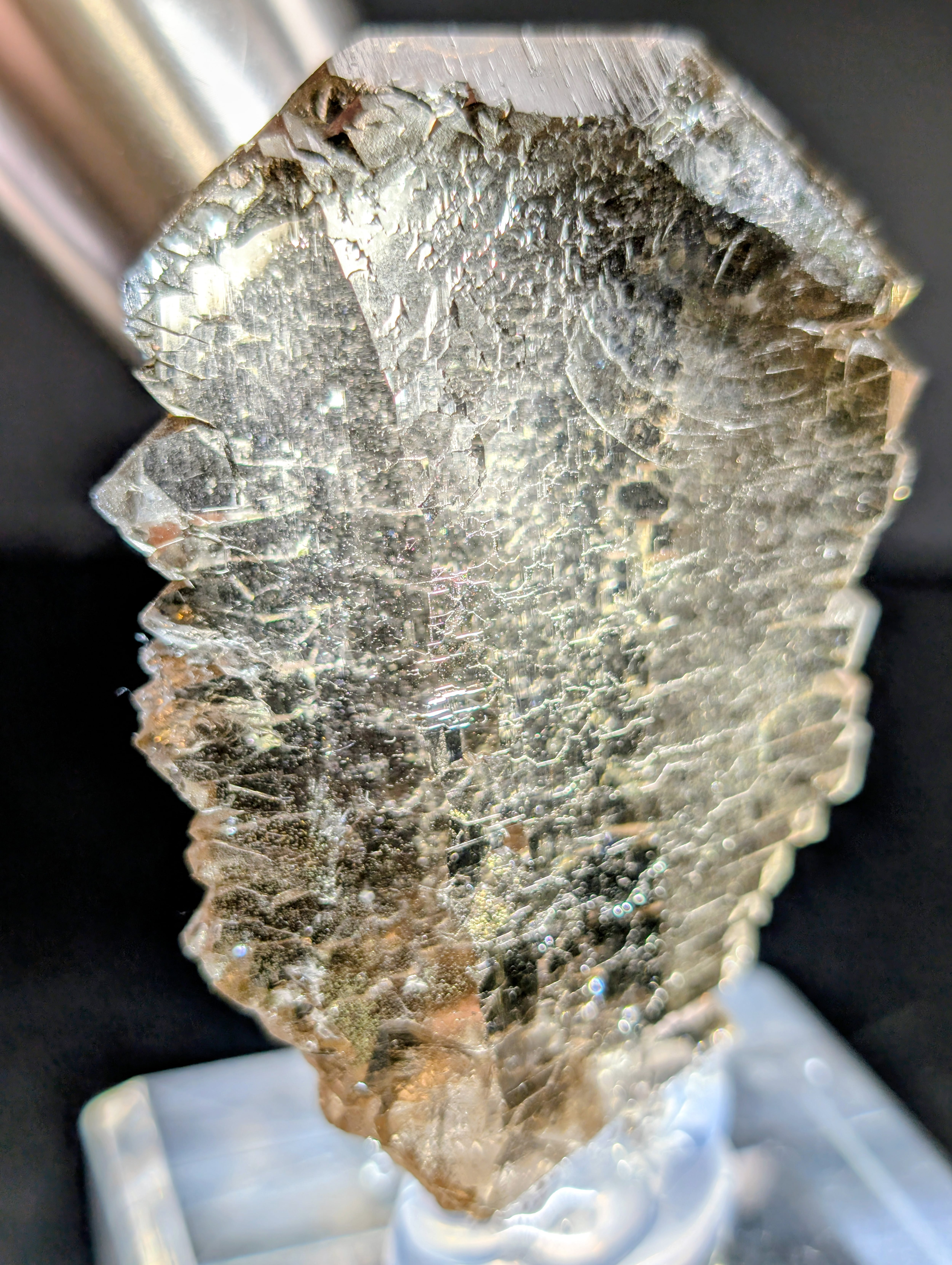 本標本はその中でも珍しい「グウィンデル(Gwindel)」タイプで、結晶がゆるやかにねじれながら成長した独特の構造を持っています。